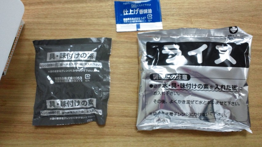 中には、ライスと書いてある袋、スープの元、最後の隠し味