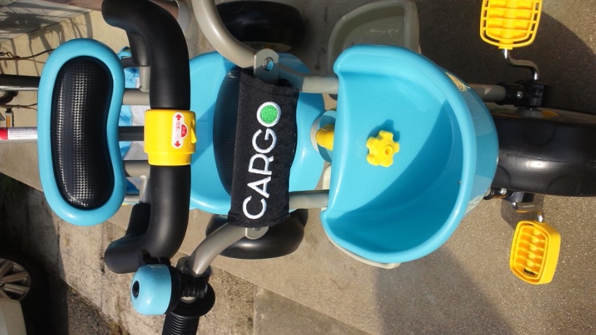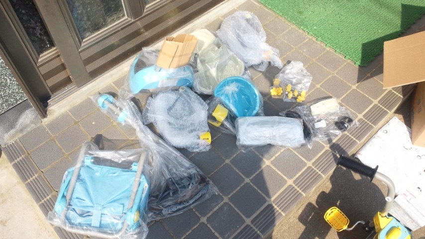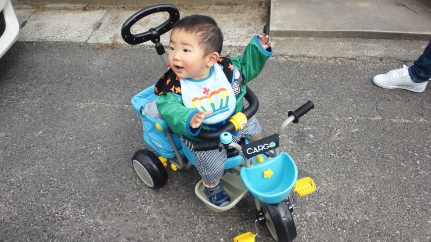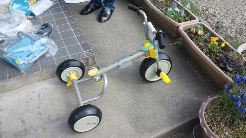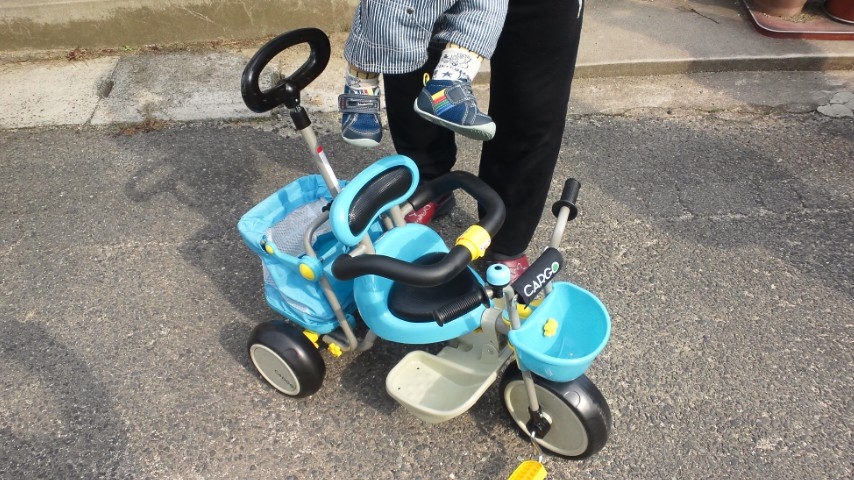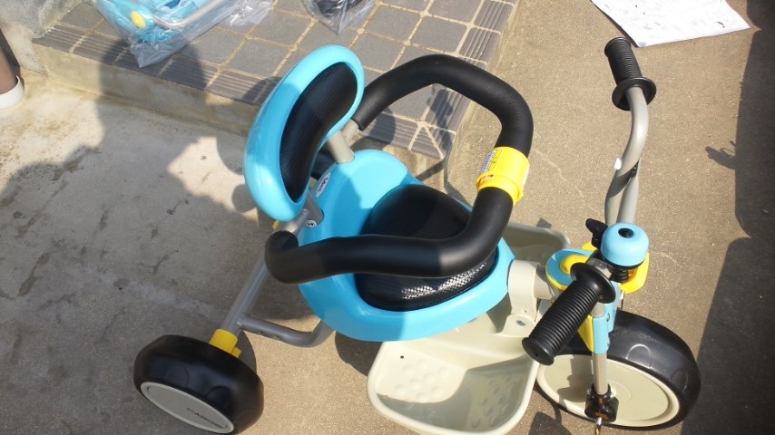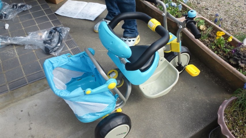 さっき、三輪車を組み立てた。