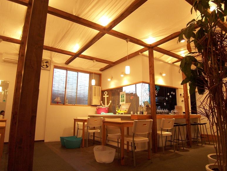 工事内容は、柱を建てて梁を渡し、照明器具の工事をして、天井へ布を付けるだけでした。