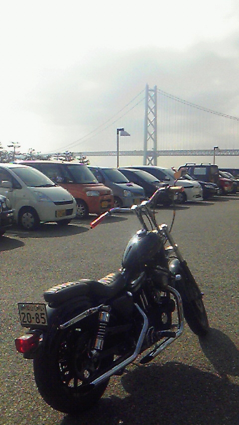 写真は昼食で寄った『なか卯』の駐車場から明石大橋とハーレー883